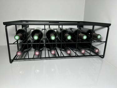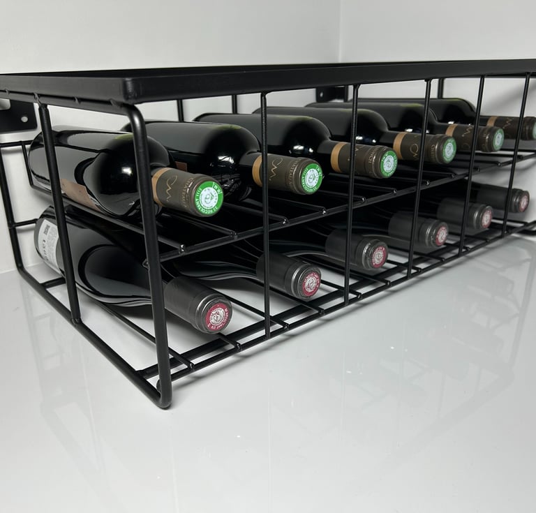 Modèle comprenant 2 niveaux supportant jusqu'à 12 bouteilles (fixations adaptés pour mur avec plinthe).
